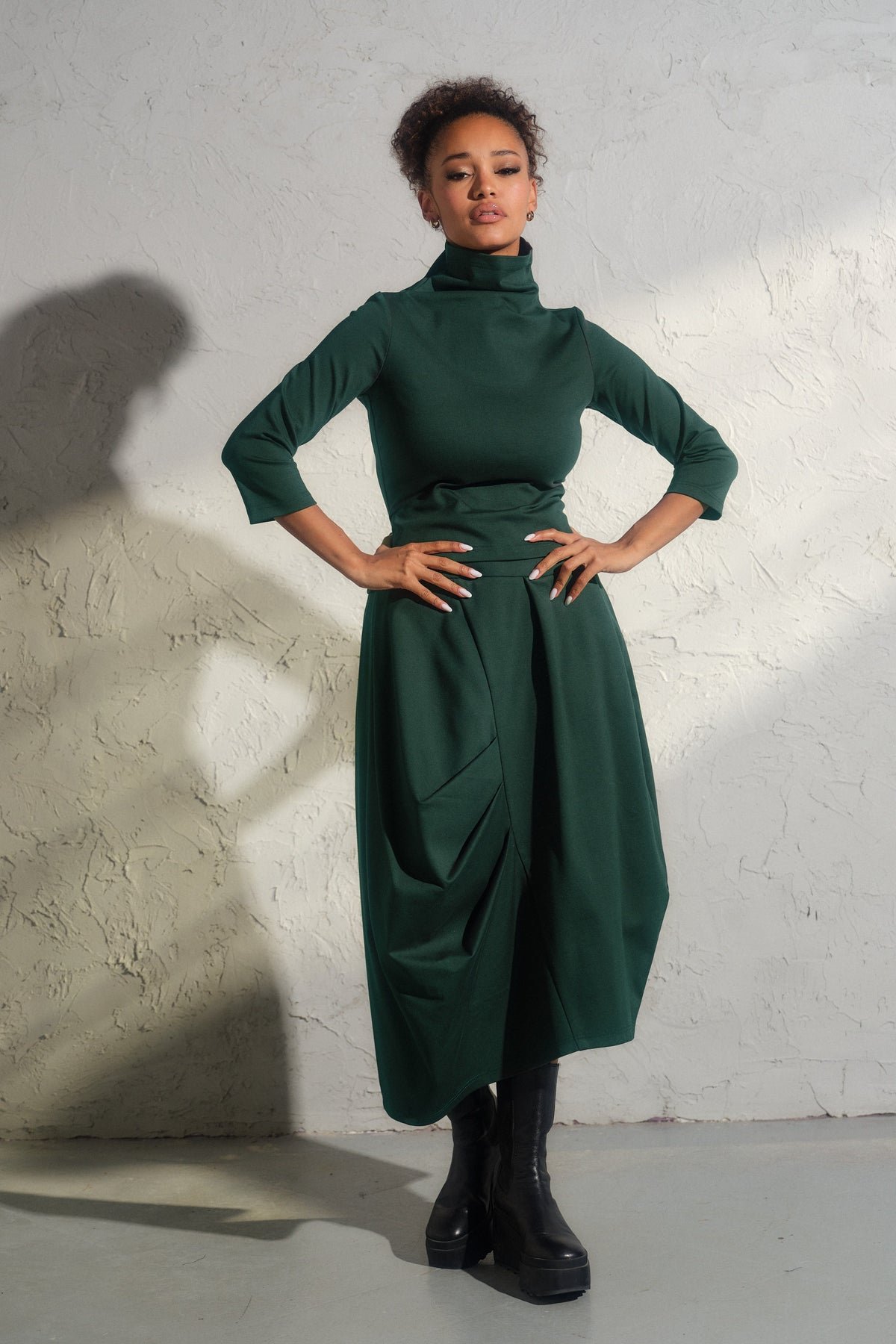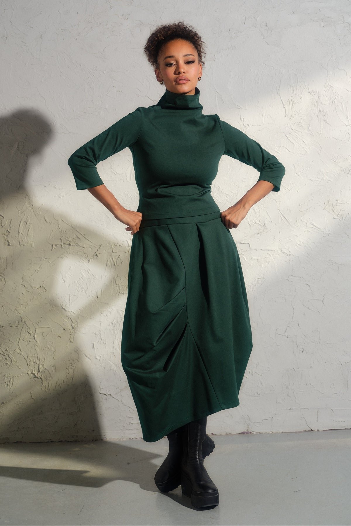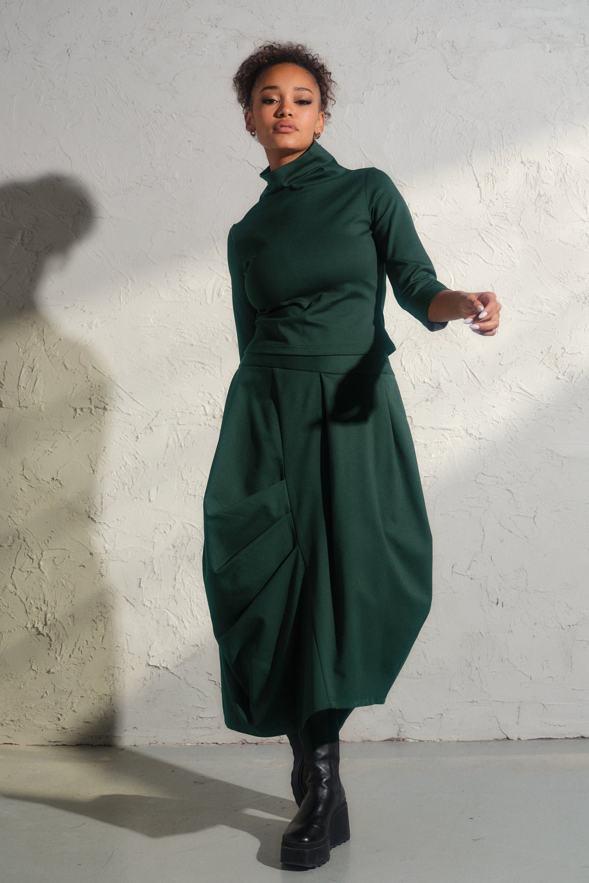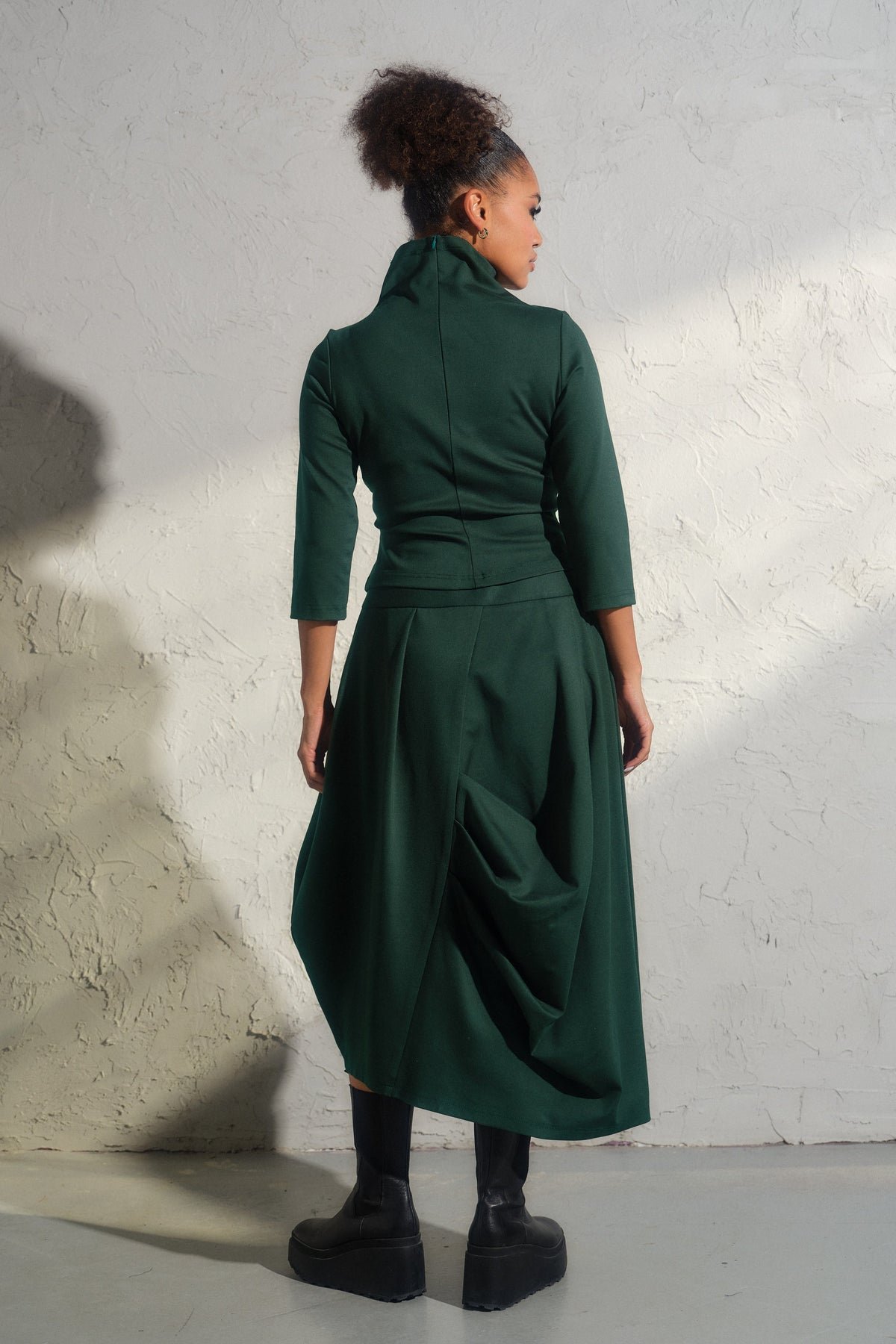 Step into the realm of contemporary elegance with our bestselling Asymmetrical viscose midi skirt. This structured asymmetrical piece is not just a skirt—it's a work of art, meticulously crafted with care from high-quality viscose knit fabric.