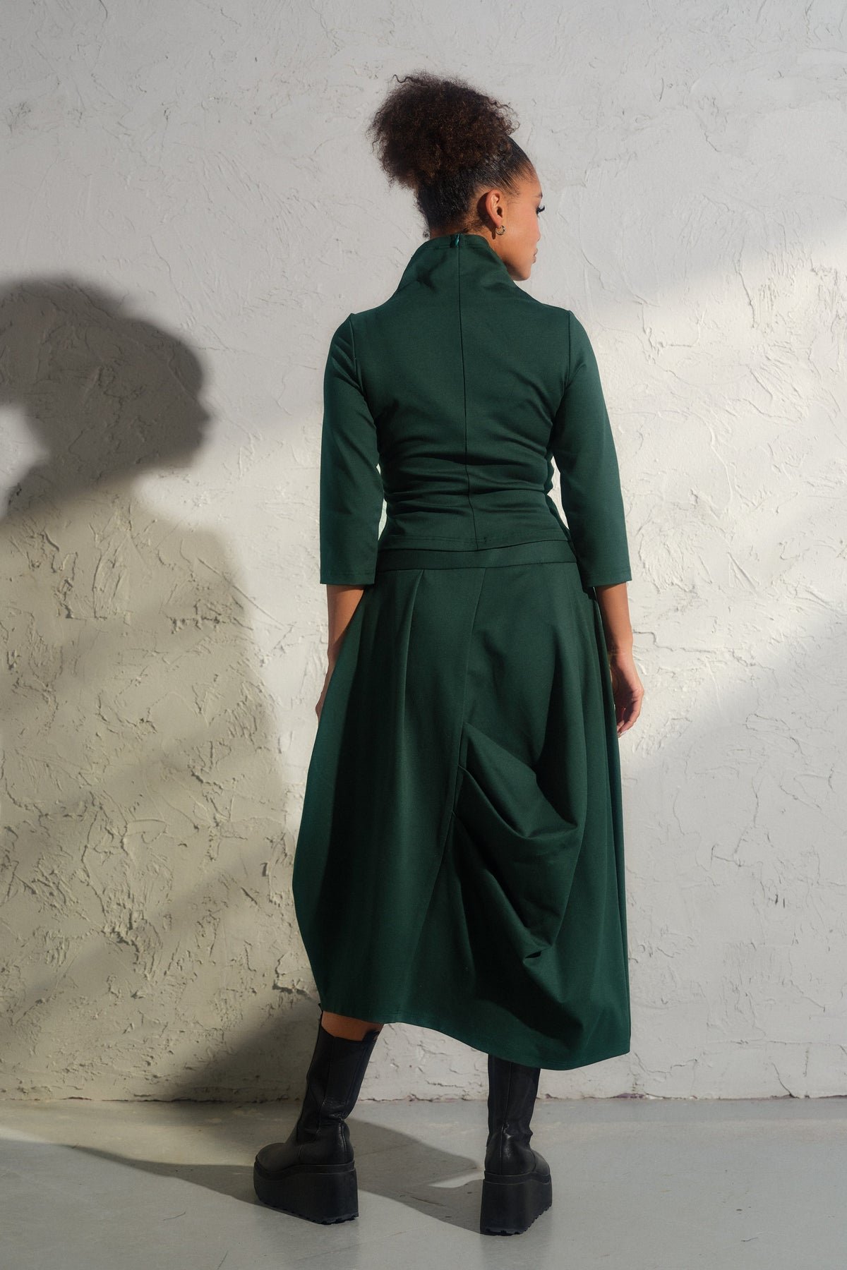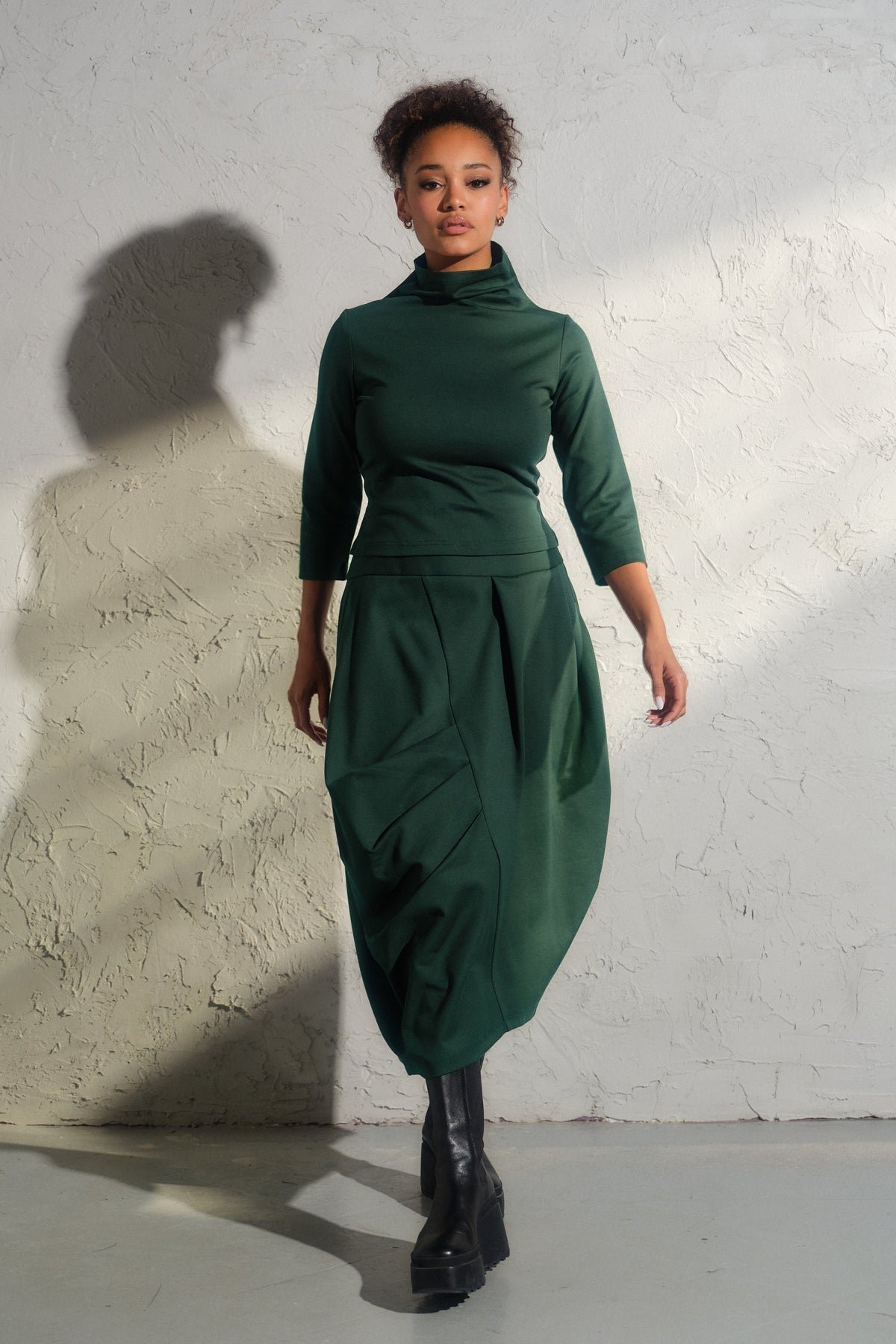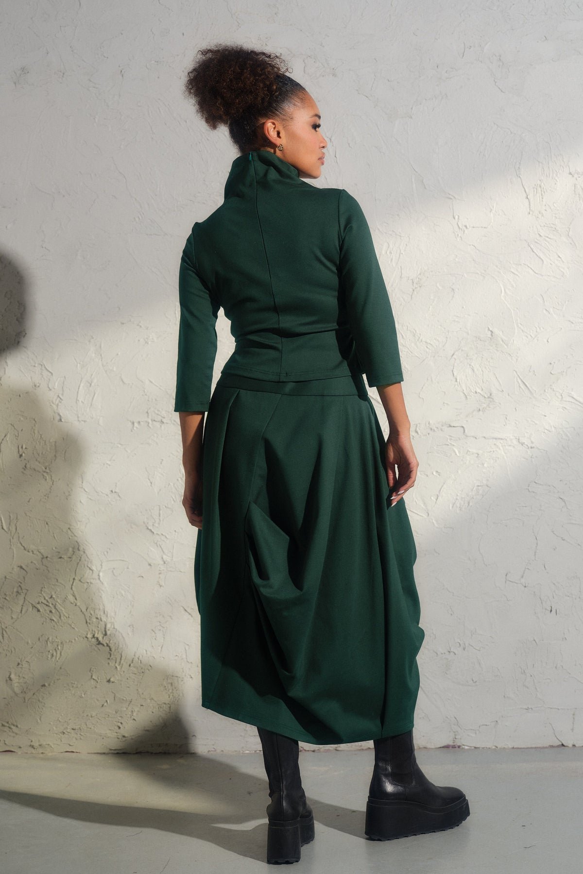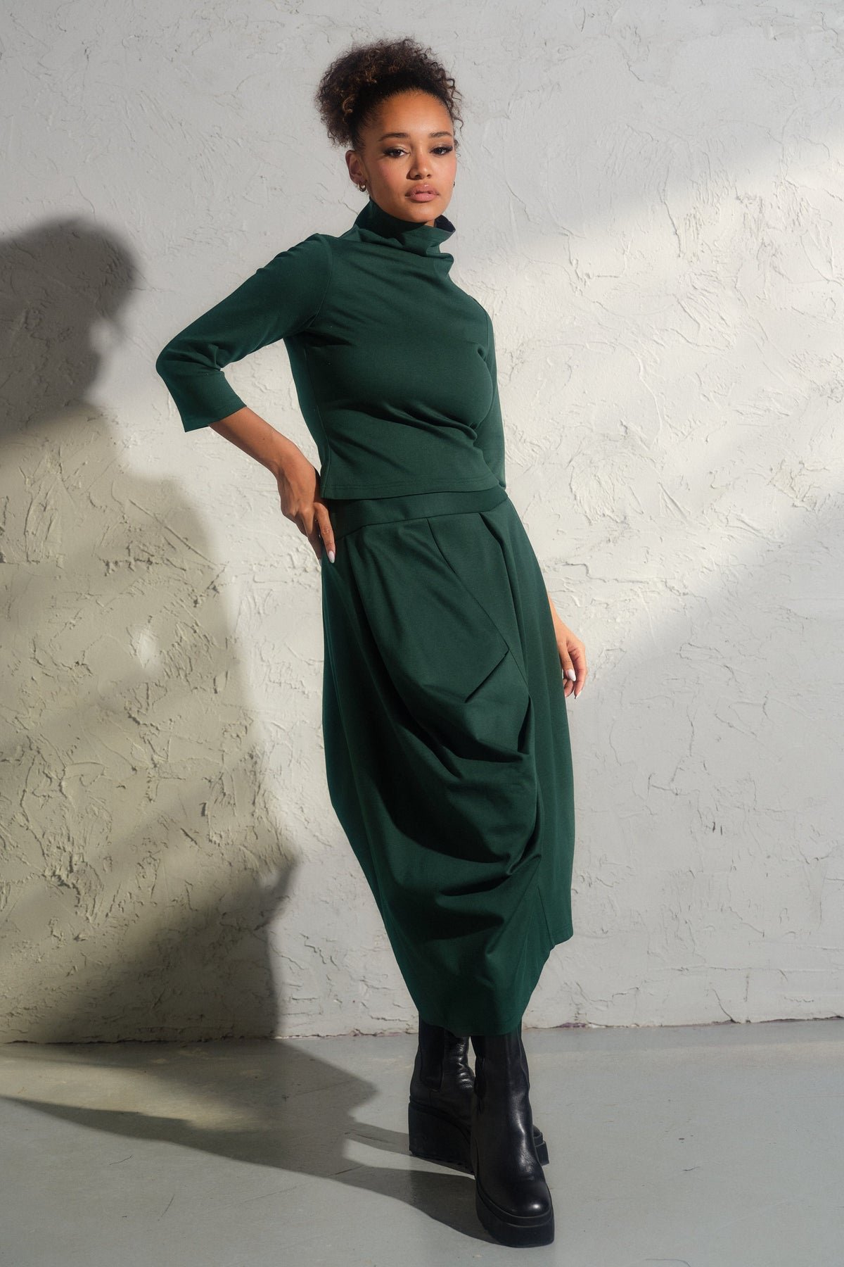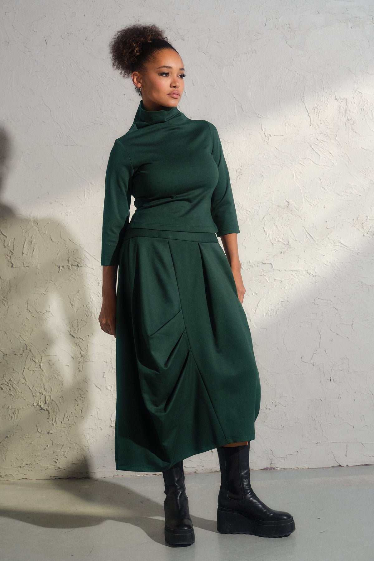 Step into the realm of contemporary elegance with our bestselling Asymmetrical viscose midi skirt. This structured asymmetrical piece is not just a skirt—it's a work of art, meticulously crafted with care from high-quality viscose knit fabric.
