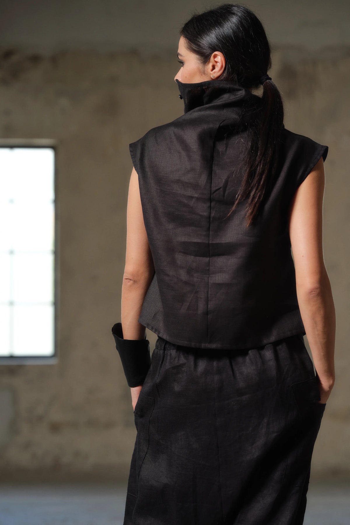Women's Avant-garde High Neck Top in Elegant Linen Blends